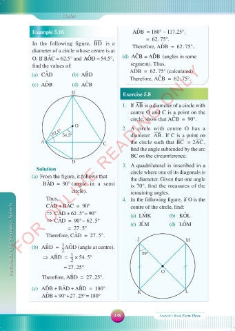 Mathematics for Secondary Schools (b) A B D = A O D (angle at centre). (c) J L M (d) L O M