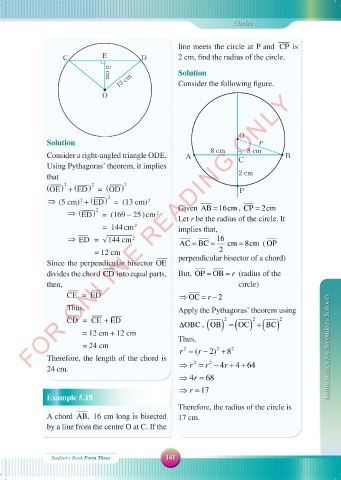 ⇒ ( ‾ ED ) = (169 − 25 ) c m Let r be the radius of the circle. It