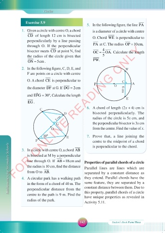 Mathematics for Secondary Schools 4. A circular park has a walking path they extend. Parallel chords have the