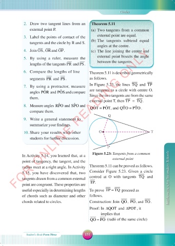 In Activity 5.14, you learned that, at a Figure 5.23: Tangents from a common