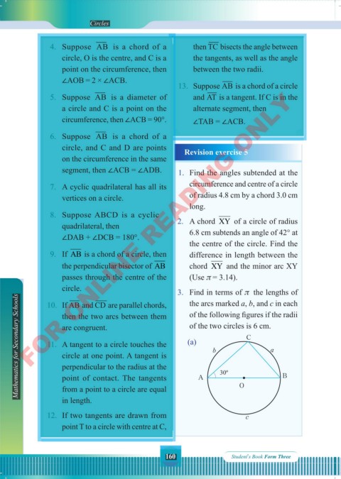 Mathematics for Secondary Schools 11. A tangent to a circle touches the (a) b 30º C a