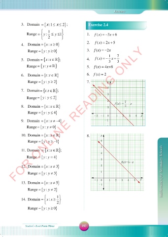 Range = { :yy ≠ } 3 1 Mathematics for Secondary Schools