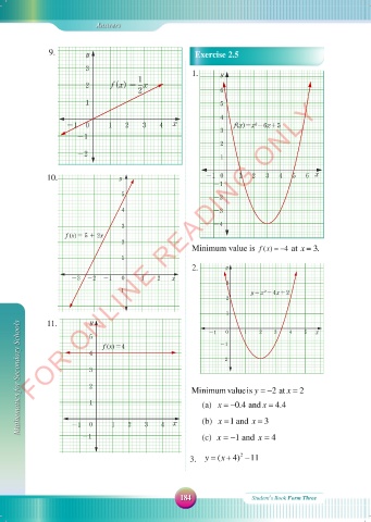 Mathematics for Secondary Schools 4 4 f (x)=4 Minimum valueis y = − 2 at x = 4.4 2