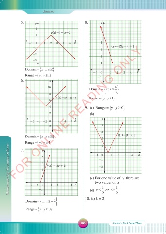 Mathematics for Secondary Schools 4 3 2 1 1 f (x) =|3x + 2| x (c) For one value of y there are