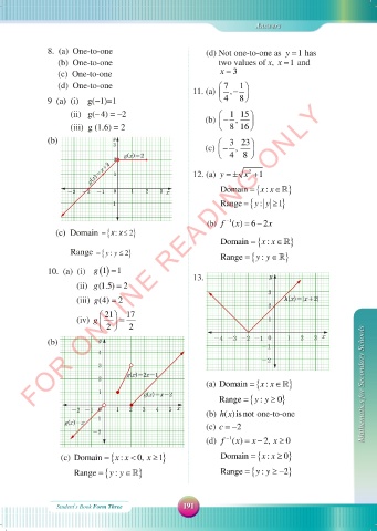8. (a) One-to-one (d) Not one-to-one as y = 1 has