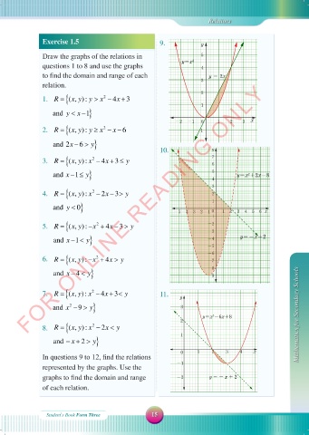 In questions 9 to 12, find the relations 0 1 2 3 4 x
