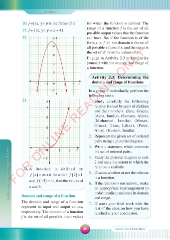 21. f = {( , ): = + 4} range of a function f is the set of all