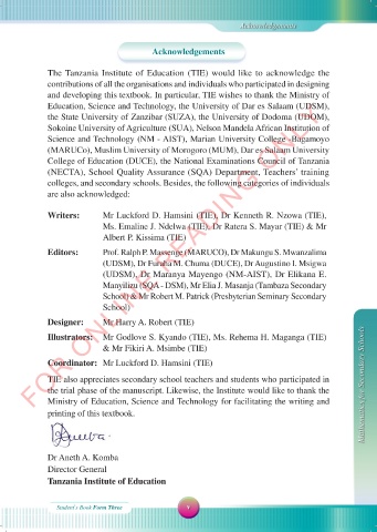 The Tanzania Institute of Education (TIE) would like to acknowledge the