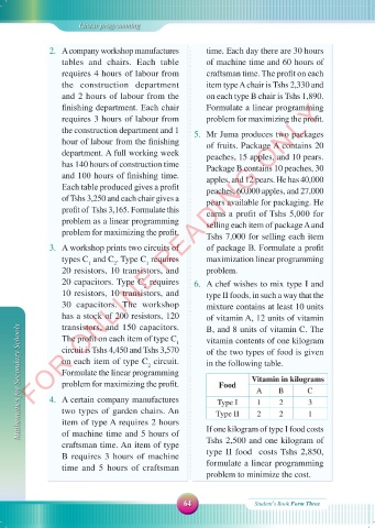 problem for maximizing the profit. Tshs 7,000 for selling each item