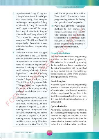 15 mg of vitamins A, B, and C per Tshs 13,000. Formulate a linear