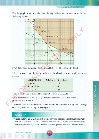 From the graph, the corner points are (0,8 , (3.6,3.2 , and (10,0 . )