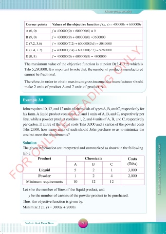 Corner points Values of the objective function f (x, y) = 400000x + 600000y