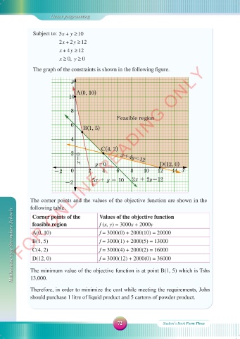 Mathematics for Secondary Schools A(0, 10) f = 3000(0) + 2000(10) = 20000