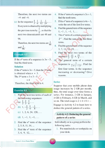 (c) In the sequence , , , , . . . 5. If the n term of a sequence is 4n − 1,