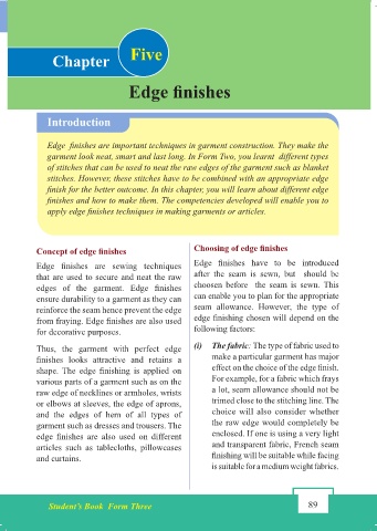 garment look neat, smart and last long. In Form Two, you learnt different types