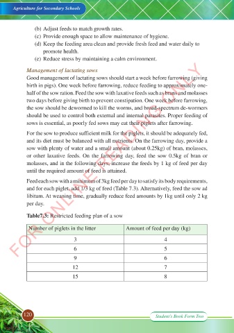 and for each piglet, add 1/3 kg of feed (Table 7.3). Alternatively, feed the sow ad