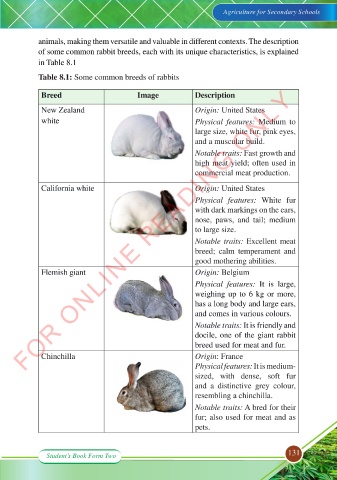 Table 8.1: Some common breeds of rabbits