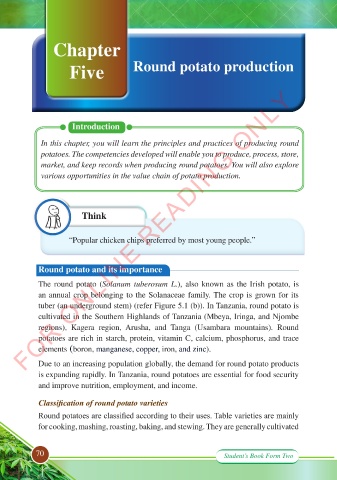 tuber (an underground stem) (refer Figure 5.1 (b)). In Tanzania, round potato is
