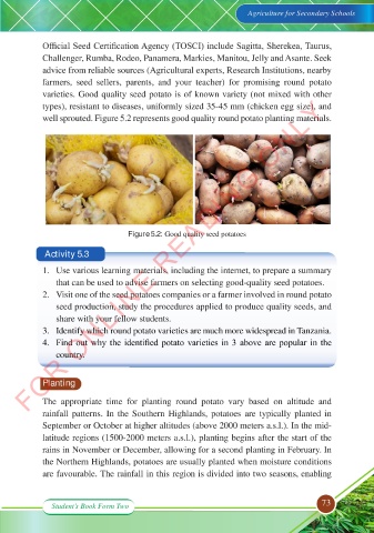 well sprouted. Figure 5.2 represents good quality round potato planting materials.