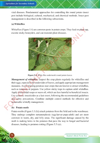 Whiteflies (Figure 5.4) are common pests in potato crops. They feed on plant sap,