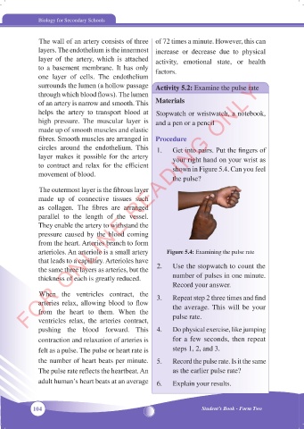 surrounds the lumen (a hollow passage Activity 5.2: Examine the pulse rate