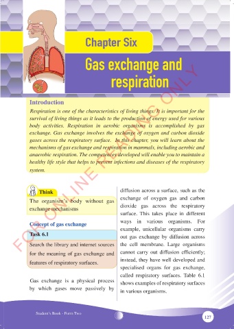 called respiratory surfaces. Table 6.1