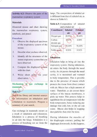 Activity 6.2: Observe the parts of the lungs. The composition of inhaled air