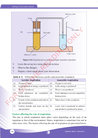 Table 6. 5: Differences between aerobic and anaerobic respiration