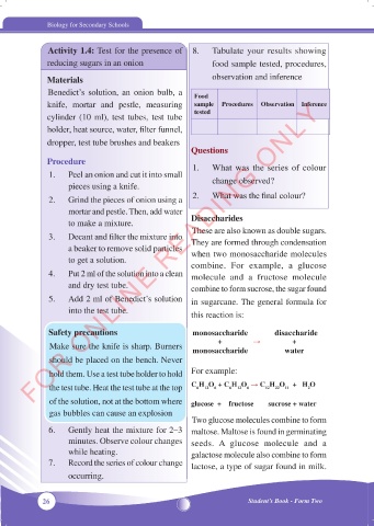 Activity 1.4: Test for the presence of 8. Tabulate your results showing