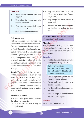 foods include potato, cassava, maize, 4. Put 2 ml of the solution into the
