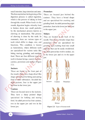 small intestine, large intestine and anus. Premolars