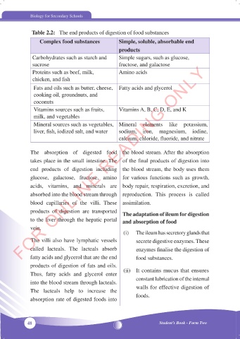 Table 2.2: The end products of digestion of food substances