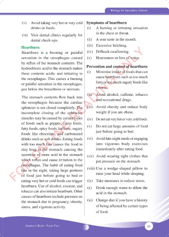 (v) Avoid taking very hot or very cold Symptoms of heartburn