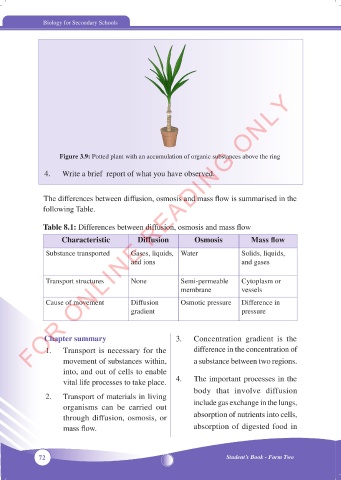 Table 8.1: Differences between diffusion, osmosis and mass flow