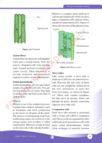 ends, located between tracheids and Figure 4.5: Phloem tissue