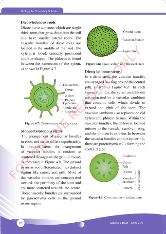 in roots and stems differs significantly. the vascular bundles and the epidermis,