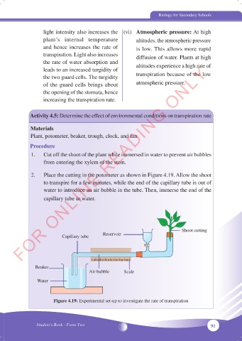 2. Place the cutting in the potometer as shown in Figure 4.19. Allow the shoot