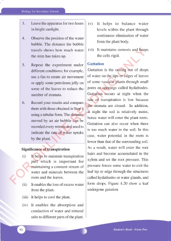 (ii) It enables the loss of excess water form drops. Figure 4.20 show a leaf