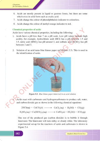 2. Solution of an acid turns blue litmus paper red (Figure 5.3). This is used in