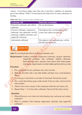 gas in the solution. Table 5.10 summarises the behaviour of some carbonates on