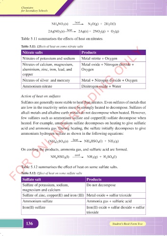 Table 5.11: Effects of heat on some nitrate salts