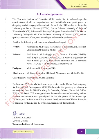 The Tanzania Institute of Education (TIE) would like to acknowledge the