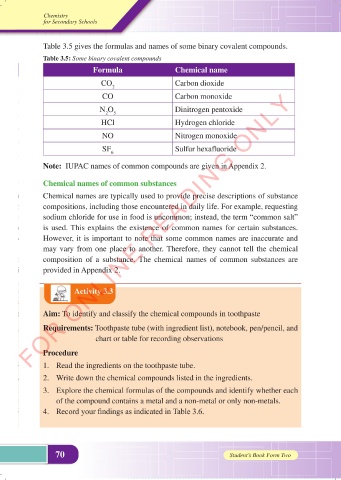 Table 3.5 gives the formulas and names of some binary covalent compounds.