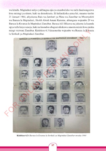 mingi visiwani Zanzibar. Kielelezo 6.3 kinaonesha wajumbe wa Baraza la Kwanza