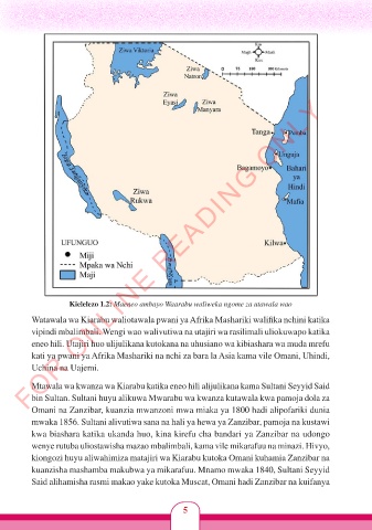 Kielelezo 1.2: Maeneo ambayo Waarabu waliweka ngome za utawala wao