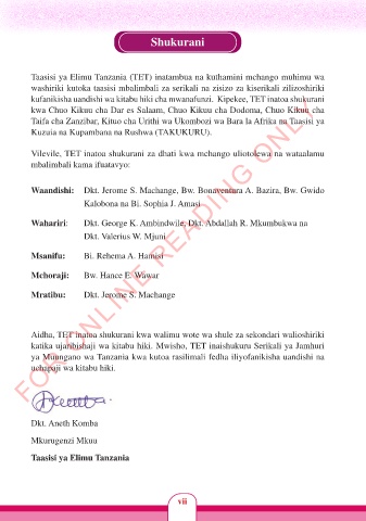 katika ujaribishaji wa kitabu hiki. Mwisho, TET inaishukuru Serikali ya Jamhuri