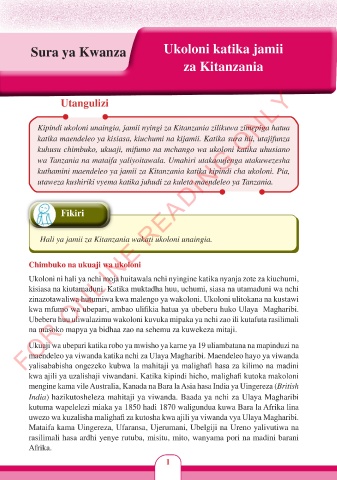 Sura ya Kwanza Ukoloni katika jamii
