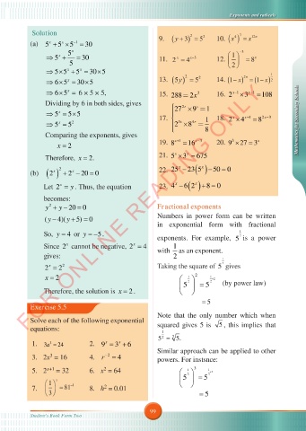 Solve each of the following exponential squared gives 5 is 5 , this implies that