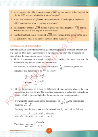 For example, in rationalizing the denominator of . , the rationalising