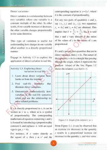 Mathematics for Secondary Schools This type of variation is useful for that x and y vary directly if the ratios